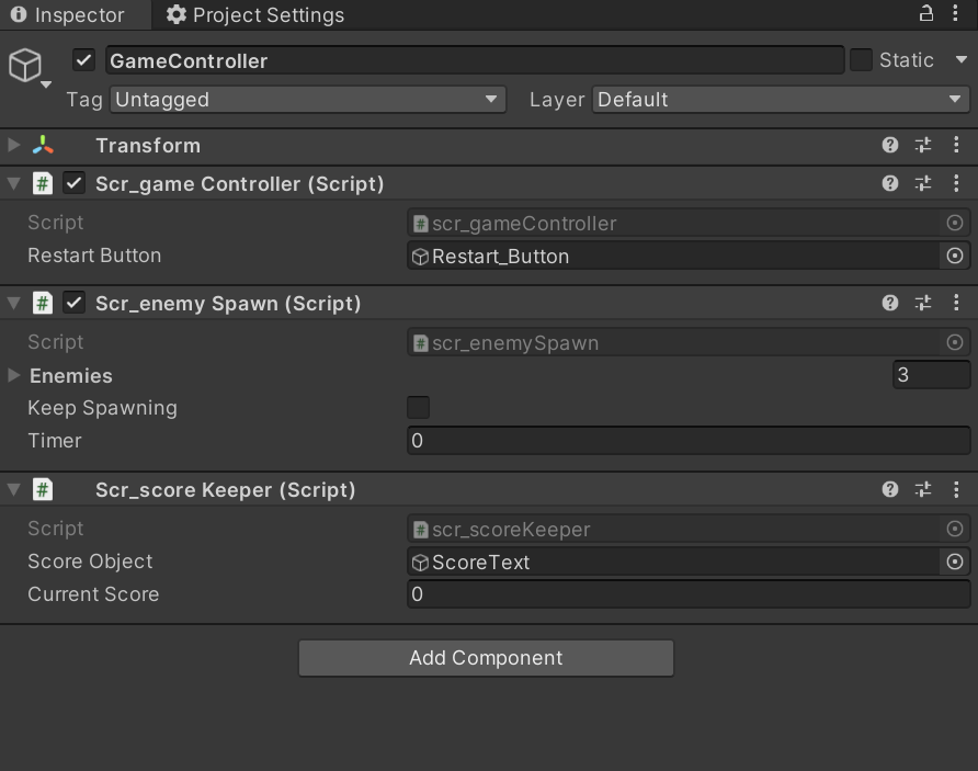 After I finished making the script, I attached it to all enemy types like seen on the screenshot I took of one of my enemy’s inspectors, which is seen just below.