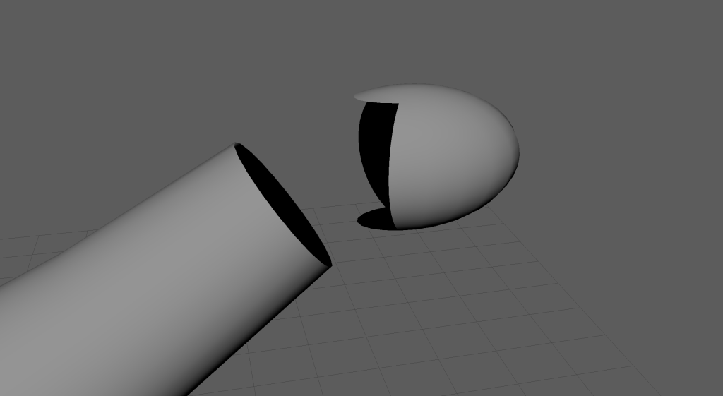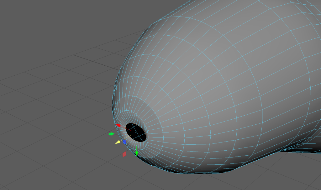 The eyes were the most simple part of the asset to make, I just created a sphere shape, adjusted its position, size and rotation onto the top of the head and then instanced it and adjusted the other shape’s position and rotation where appropriate. For the mouth, I created a torus shape and positioned, scaled on rotated it onto the the end of the head, like seen below on the right.