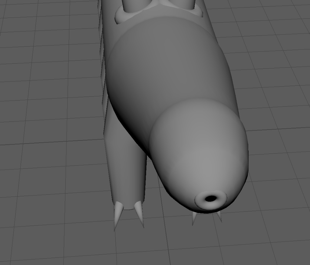 Next was the creation of the legs. The process of creating the overall shape of the legs was similar to that of creating the body, but with fewer segments and the legs being smaller.