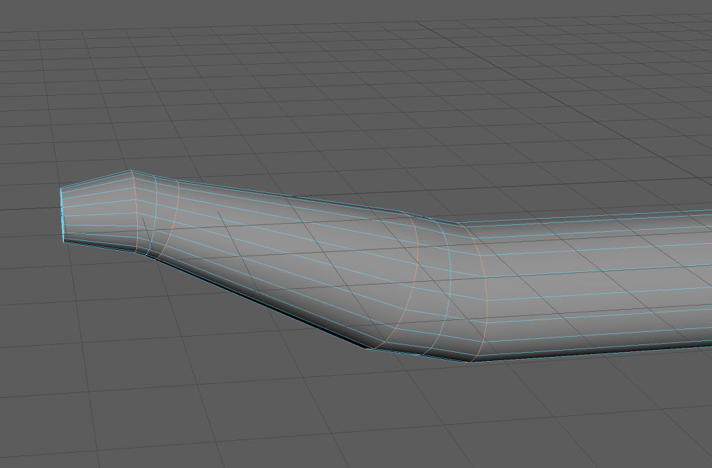 Finally, I created 8 tentacles on the bottom of the neck near the front legs through extruding some of the faces nearby several times, allowing me to have several segments in my tentacles which can be rotated in different directions as seen below. However, since these extrusions ended up being square, I had to end up with utilising the smooth and bevel tools in order for the tentacles to look more smoother and more organic.