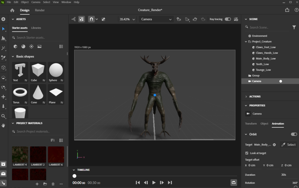 Initially, I exported all my textures as the “Arnold(aiStandard)” template, however when I came to add the textures into Maya it would not work despite having the correct settings on. This prompted me to try out the Adobe Substance Stager turntable instead, as it would be more convenient and less time consuming to do so. The turntable render is a new feature in substance stager, which allows you render a turntable for the selected 3D model. So, I exported the textures and the asset from substance painter and imported them into substance stager. I made sure to set up the render so that it would turn 360 degrees around the asset. This process was straight forward as I had to select the object that the camera could orbit, the length of the video and the number of frames per second. My only regret on the rendering stage was that I did not take time to adjust lighting accordingly, due to the stress caused by the problem that I had with Maya, so I might consider that in future projects.